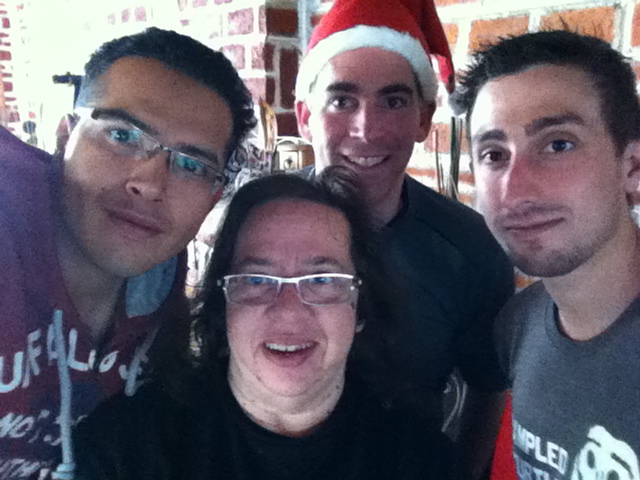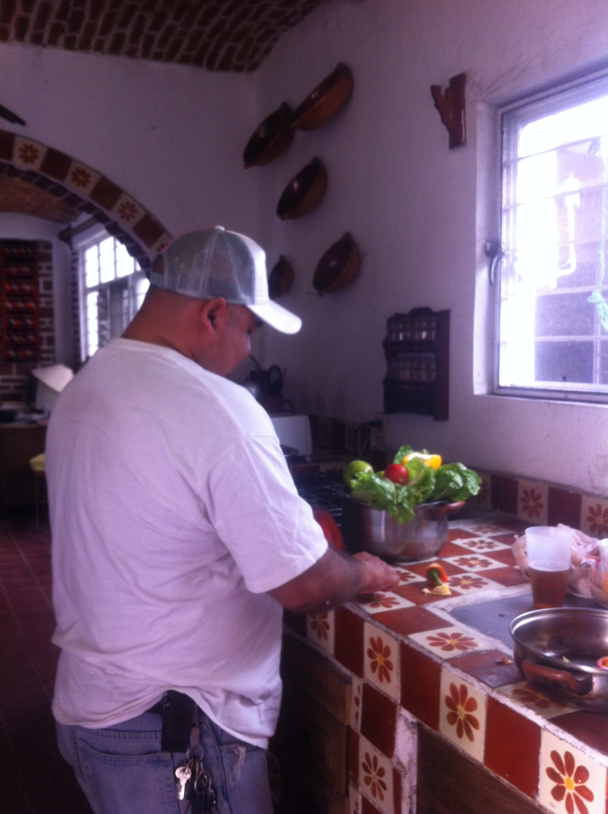 I returned to Tlaquepaque via the Baja Norte and Culiacan in November, after spending several months in Winnipeg again. I came home to the house on Zalatitan to find two housemates. Omar was an English teacher from Oregon. We became great friends and I recently went to Tototlan to visit him after he moved away. Stephen was from B.C. and we have known each other for a couple of years now as he comes here to study Spanish for several months of the year. Sean arrived from Colorado and introduced me to the world of blogging on WordPress. Sean and Omar were notorious for blasting a variety of music through the speakers in the living room, and it became all too quiet when they both moved out. Here is a pic taken at Christmas when we all prepared a sumptuous meal together.